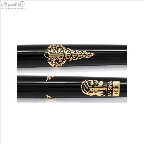 - بدنه قلم منقوش به تصوير چهره ابن سينا و نام وي به انگليسي و نيز نشان Caduceus (سمبل پزشکي) است. خلق اين نقوش بصورت برجسته روي بدنه فلزي خود شاهکاري بي بديل و بسيار ظريف است.